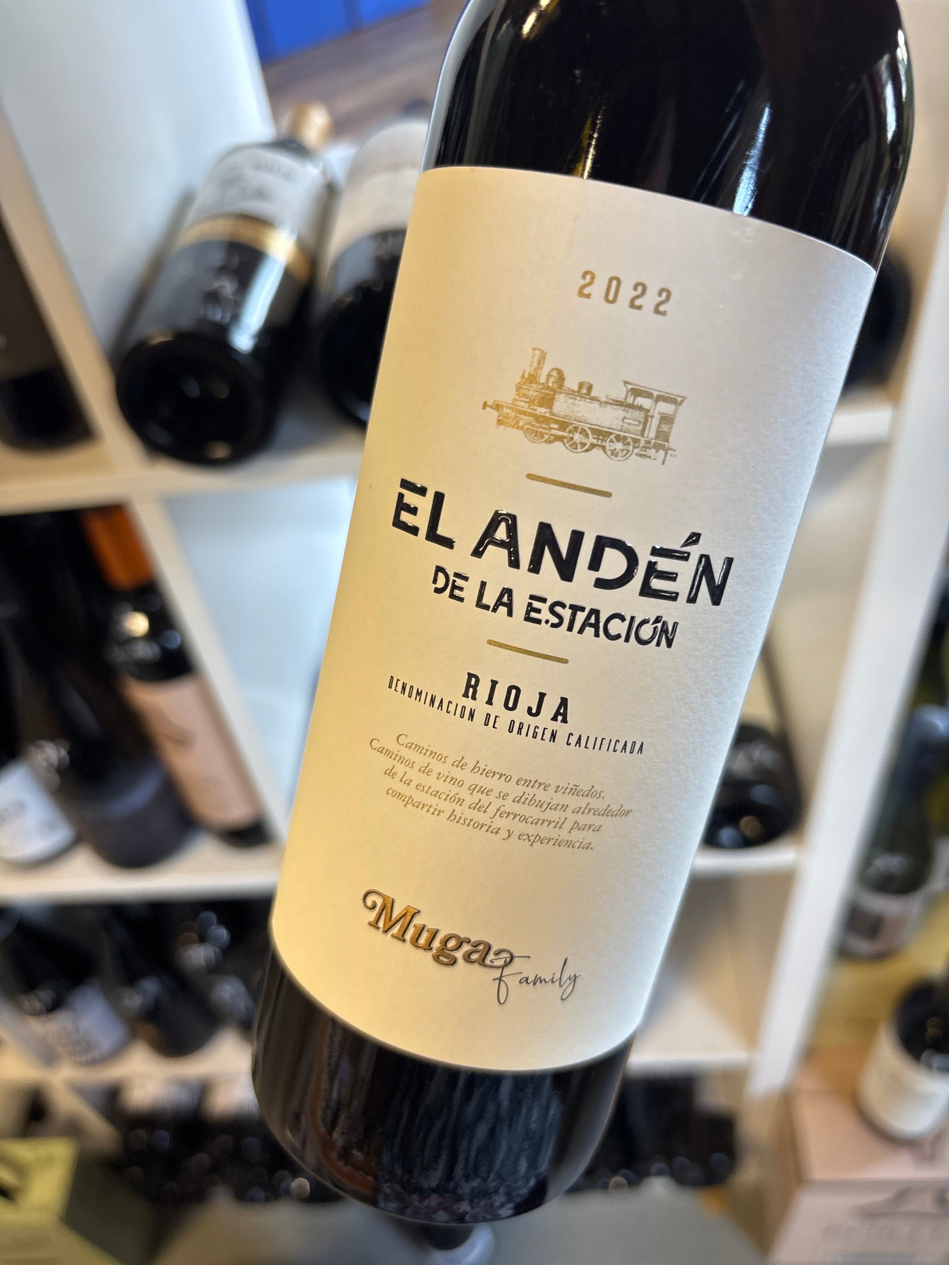 Wijngaarden in de heuvels van de Montes Obarenes, in het hart van Rioja Alta (maximaal 15 jaar oude stokken) en wijngaarden in Rioja Oriental (waar meer garnacha aangeplant staat) leveren de druiven voor deze nieuwe wijn van de Muga familie. De naam komt van de historische band die Rioja in het stadje Haro heeft met Bordeaux: in het verleden kwamen alle treinen uit Bordeaux aan op het station in Haro in de wijk ‘Barrio de Estación’ waar Muga en een aantal andere beroemde bodegas gevestigd is. El Andén (= platform) de la Estación refereert aan deze historie.